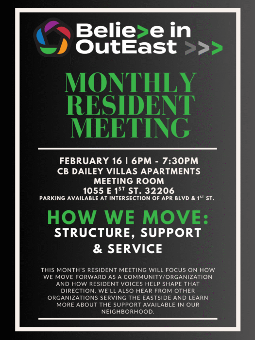 This month’s resident meeting will focus on how we move forward as a community/organization and how resident voices help shape that direction. We’ll also hear from other organizations serving the Eastside and learn more about the support available in our neighborhood.